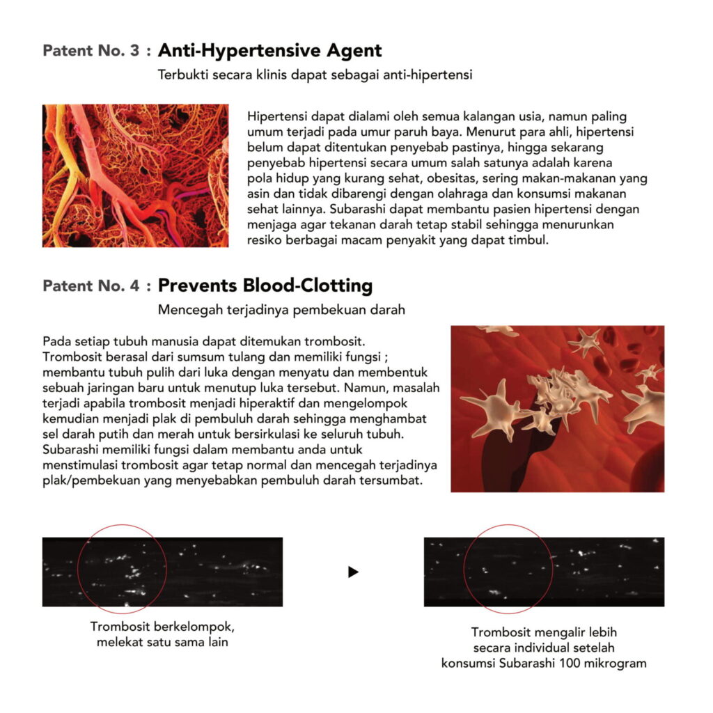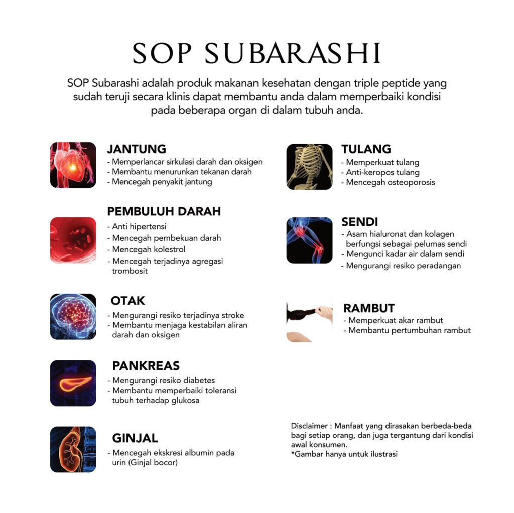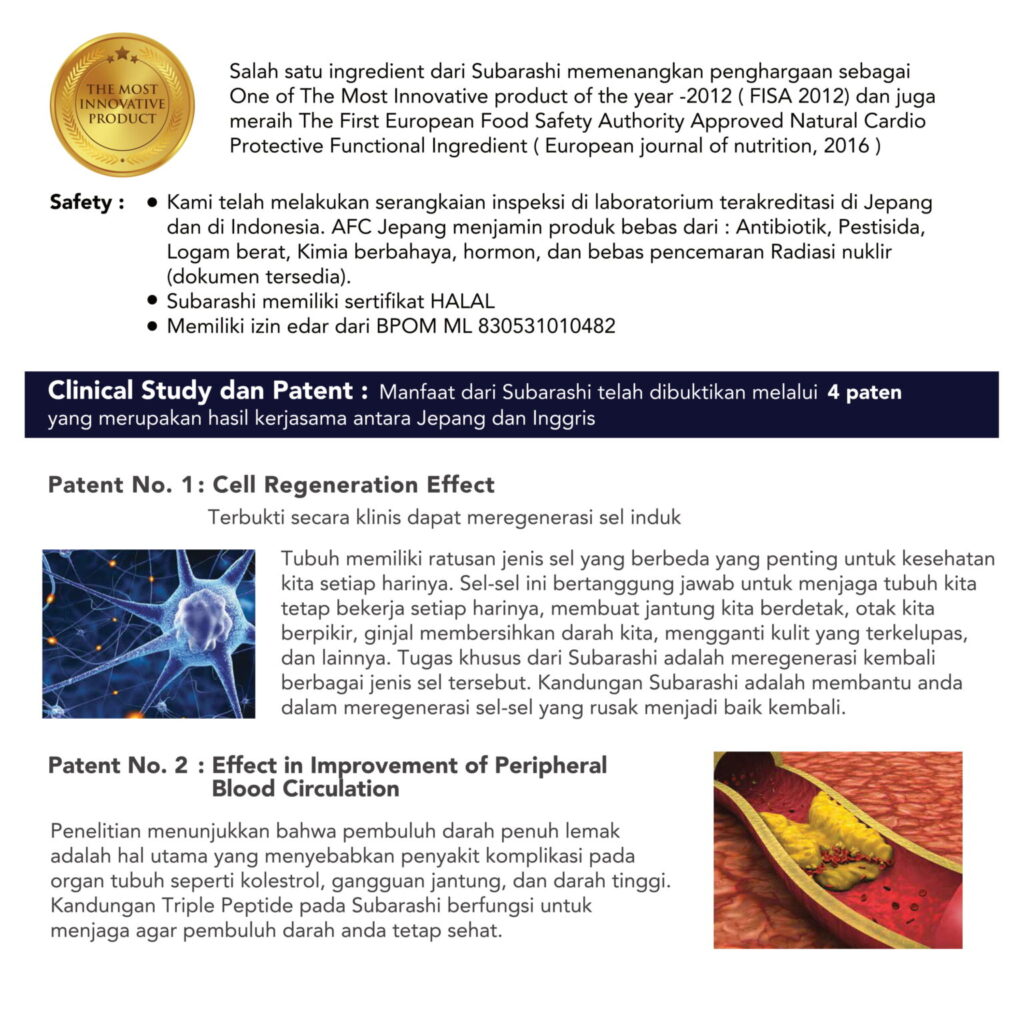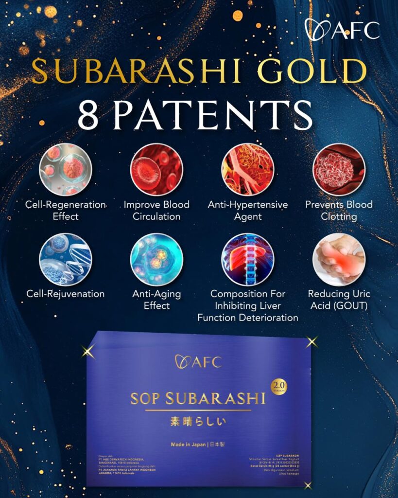 SOP Subarashi Gold memiliki 8 paten manfaat, seperti yang tertera pada gambar di bawah ini :