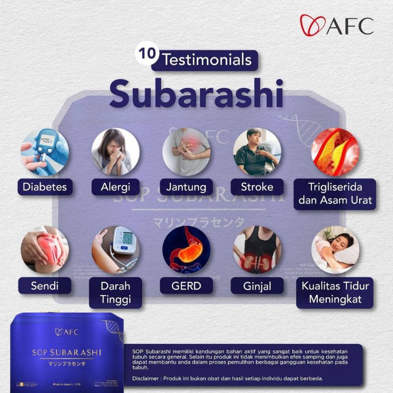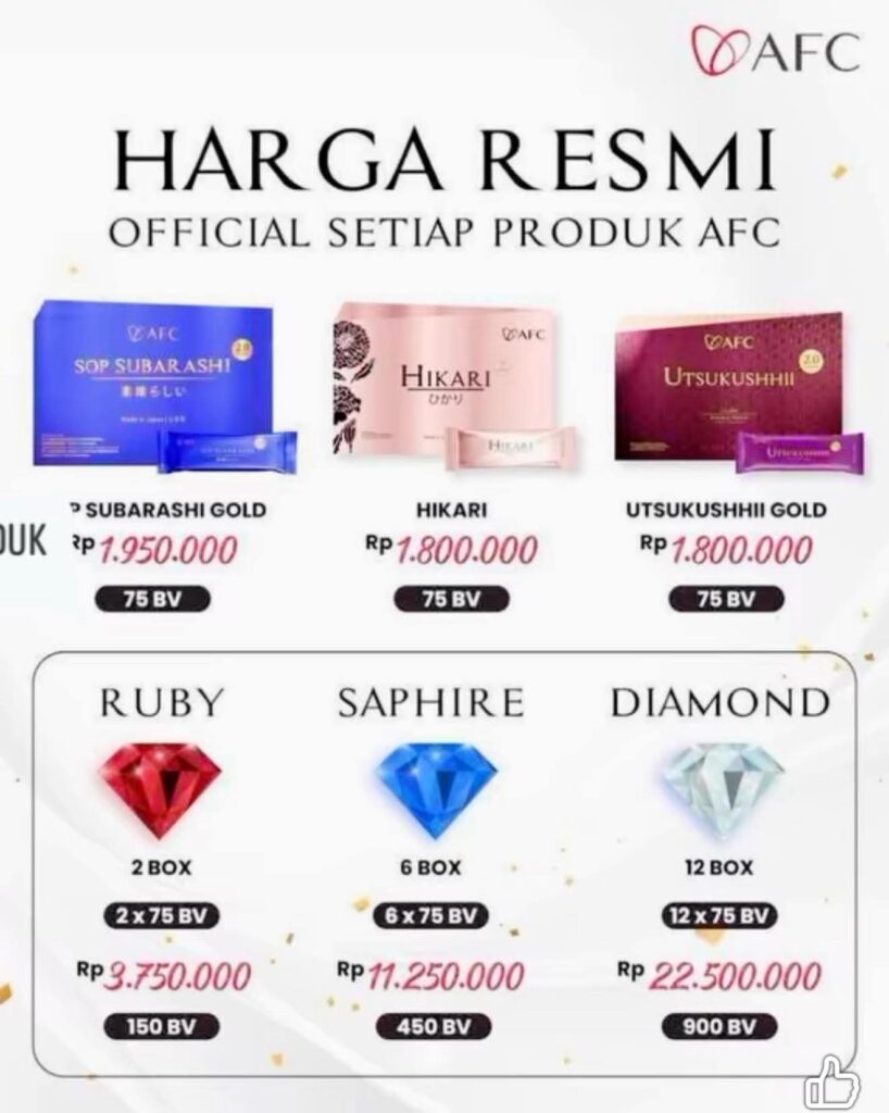 Kami adalah distributor resmi AFC Makassar yang melayani pemesanan produk AFC yaitu SOP Subarashi Gold, Utsukushhii Gold dan Hikari yang asli.